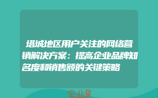- 塔城地区用户关注的网络营销解决方案:提高企业品牌知名度和销售额的关键策略
