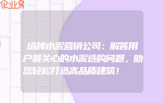 - 塔牌水泥营销公司:解答用户最关心的水泥选购问题,助您轻松打造高品质建筑!