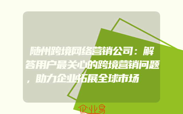 - 随州跨境网络营销公司:解答用户最关心的跨境营销问题,助力企业拓展全球市场