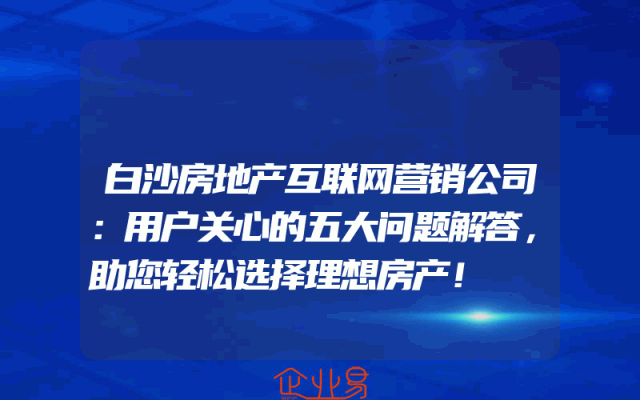 - 白沙房地产互联网营销公司:用户关心的五大问题解答,助您轻松选择理想房产!