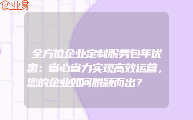 - 全方位企业定制服务包年优惠:省心省力实现高效运营,您的企业如何脱颖而出?