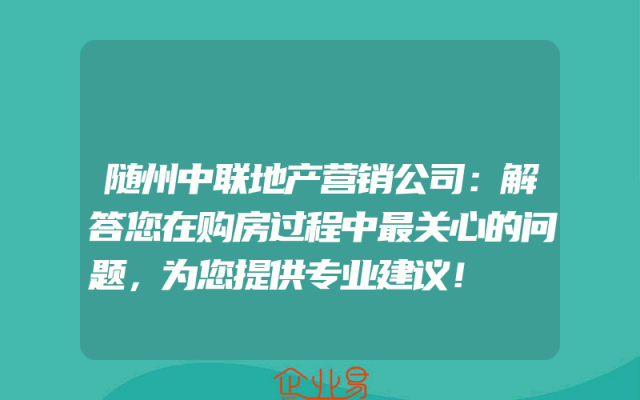 - 随州中联地产营销公司:解答您在购房过程中最关心的问题,为您提供专业建议!