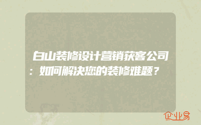 - 白山装修设计营销获客公司:如何解决您的装修难题?