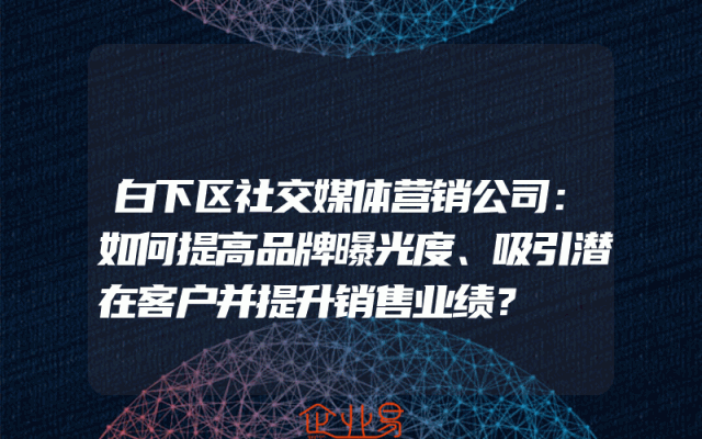 - 白下区社交媒体营销公司:如何提高品牌曝光度、吸引潜在客户并提升销售业绩?