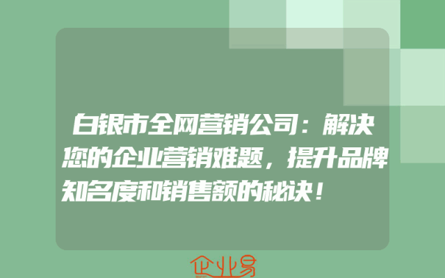 - 白银市全网营销公司:解决您的企业营销难题,提升品牌知名度和销售额的秘诀!