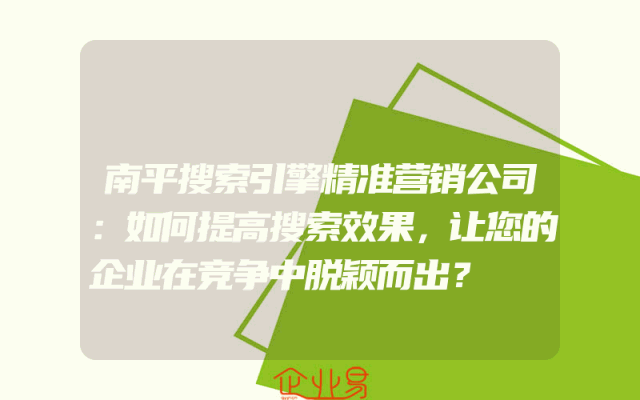 - 南平搜索引擎精准营销公司:如何提高搜索效果,让您的企业在竞争中脱颖而出?