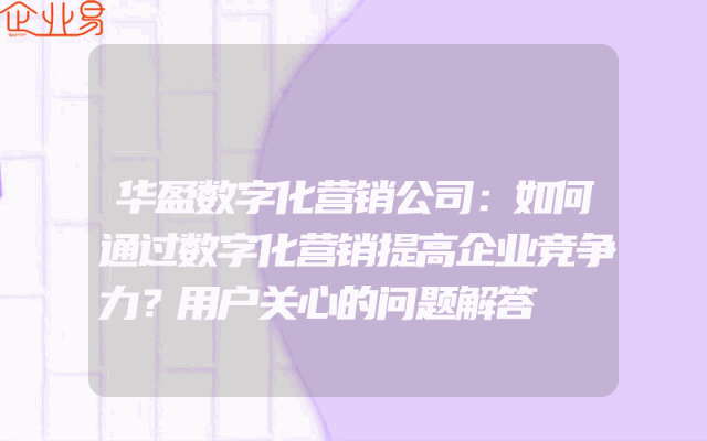 - 华盈数字化营销公司:如何通过数字化营销提高企业竞争力?用户关心的问题解答