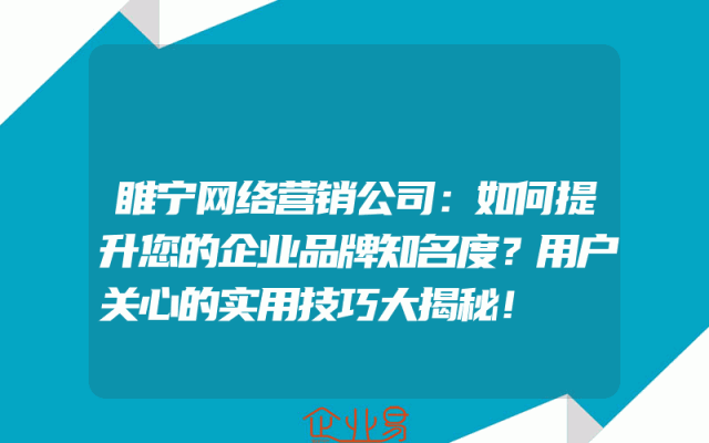 - 睢宁网络营销公司:如何提升您的企业品牌知名度?用户关心的实用技巧大揭秘!
