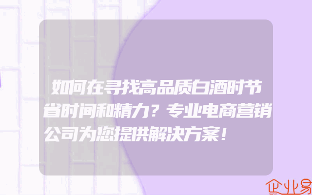 - 如何在寻找高品质白酒时节省时间和精力?专业电商营销公司为您提供解决方案!