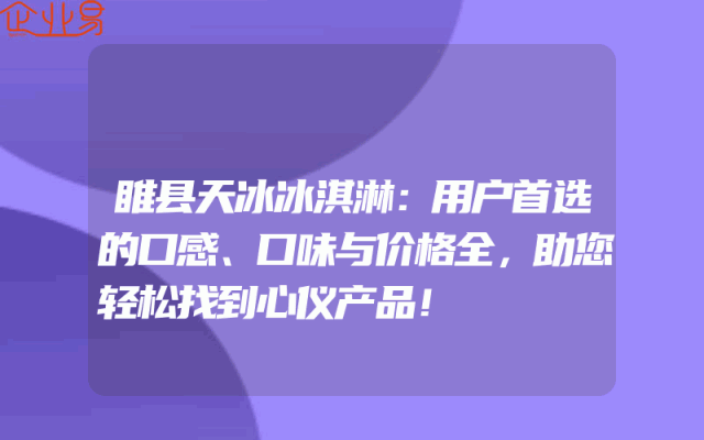 - 睢县天冰冰淇淋:用户首选的口感、口味与价格全,助您轻松找到心仪产品!