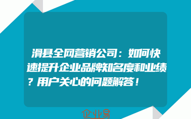 - 滑县全网营销公司:如何快速提升企业品牌知名度和业绩?用户关心的问题解答!