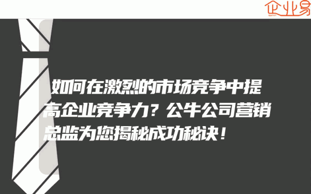 - 如何在激烈的市场竞争中提高企业竞争力?在当今的商业环境中,竞争日益激烈。企业要想在市场中脱颖而出,提高自身的竞争力是非常重要的。那么,如何才能在激烈的市场竞争中提高企业竞争力呢?公牛公司营销总监将为您揭秘成功秘诀!首先,我们需要明确企业的核