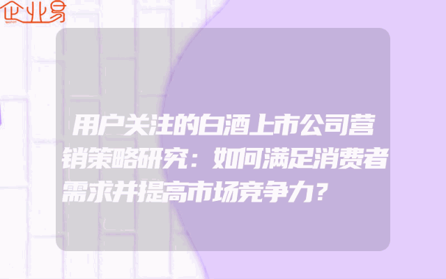 - 用户关注的白酒上市公司营销策略研究:如何满足消费者需求并提高市场竞争力?
