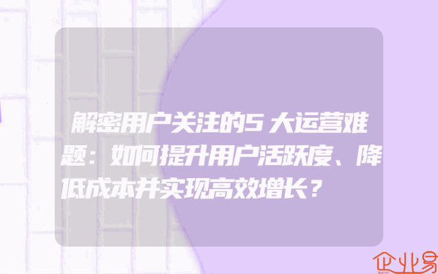 - 解密用户关注的5大运营难题:如何提升用户活跃度、降低成本并实现高效增长?