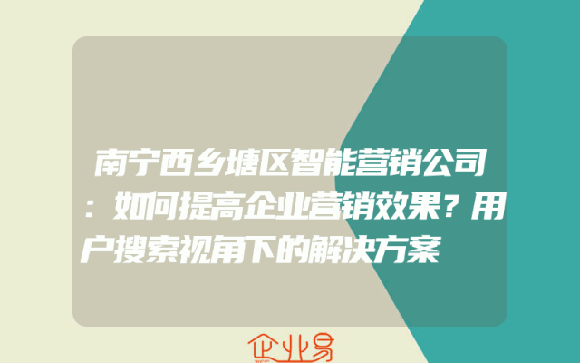 - 南宁西乡塘区智能营销公司:如何提高企业营销效果?用户搜索视角下的解决方案