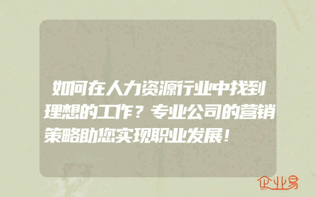 - 如何在人力资源行业中找到理想的工作?专业公司的营销策略助您实现职业发展!
