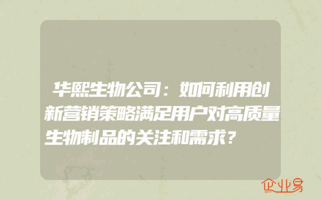 - 华熙生物公司:如何利用创新营销策略满足用户对高质量生物制品的关注和需求?