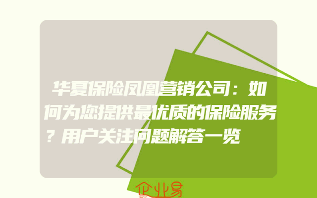 - 华夏保险凤凰营销公司:如何为您提供最优质的保险服务?用户关注问题解答一览
