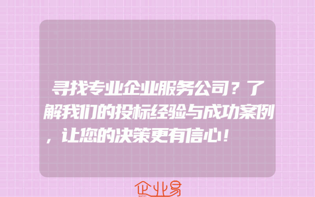 - 寻找专业企业服务公司?了解我们的投标经验与成功案例,让您的决策更有信心!