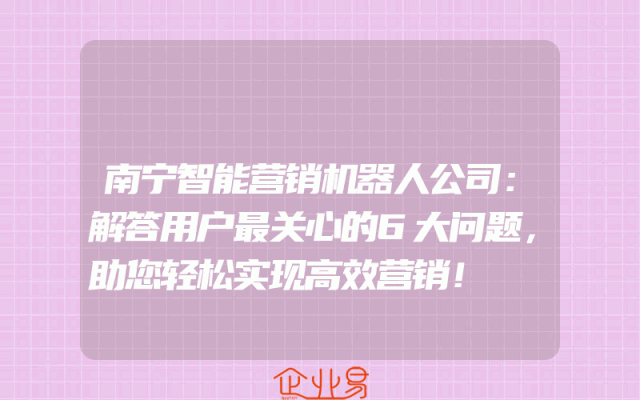 - 南宁智能营销机器人公司:解答用户最关心的6大问题,助您轻松实现高效营销!