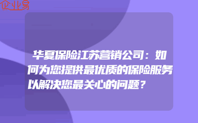 - 华夏保险江苏营销公司:如何为您提供最优质的保险服务以解决您最关心的问题?
