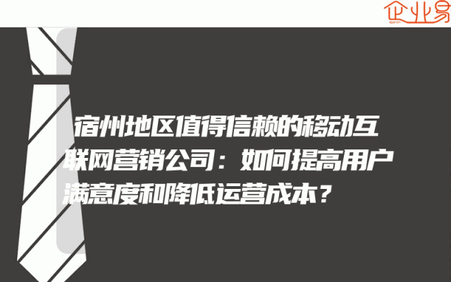 - 宿州地区值得信赖的移动互联网营销公司:如何提高用户满意度和降低运营成本?
