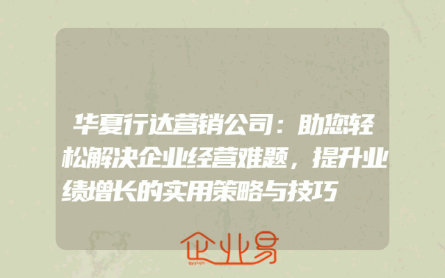 - 华夏行达营销公司:助您轻松解决企业经营难题,提升业绩增长的实用策略与技巧