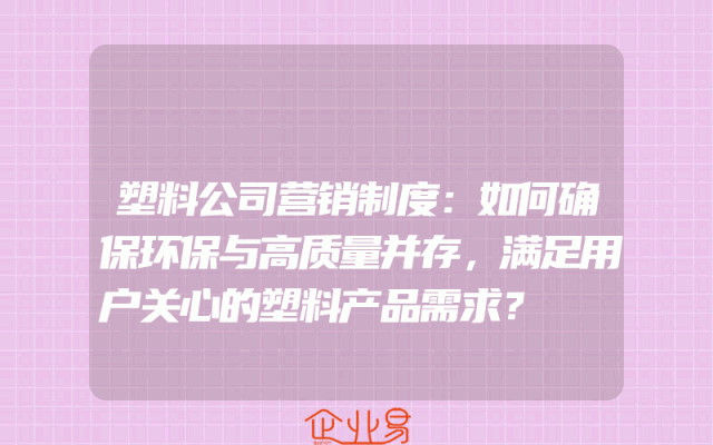 - 塑料公司营销制度:如何确保环保与高质量并存,满足用户关心的塑料产品需求?