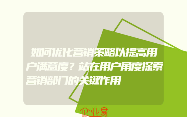 - 如何优化营销策略以提高用户满意度?站在用户角度探索营销部门的关键作用