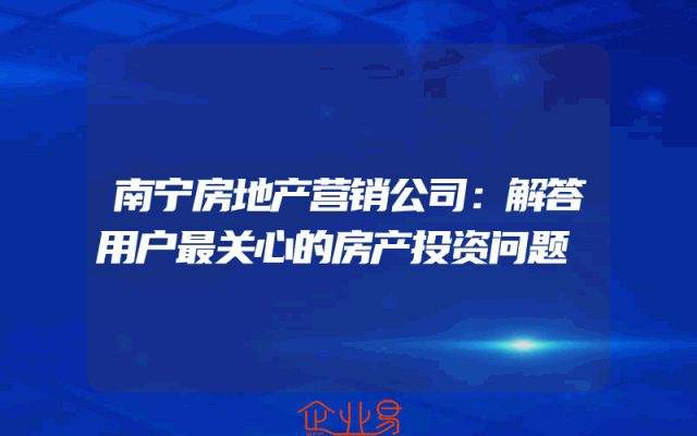 - 南宁房地产营销公司:解答用户最关心的房产投资问题