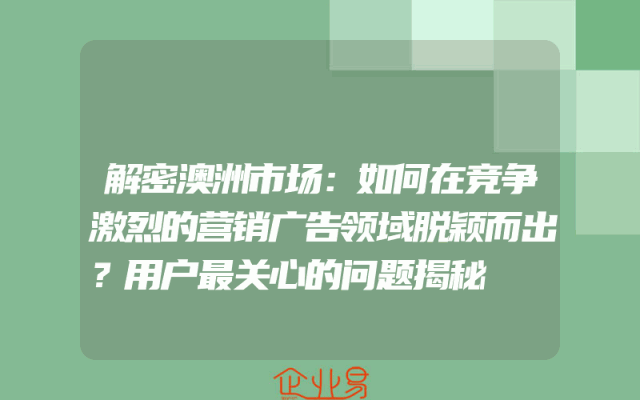 - 解密澳洲市场:如何在竞争激烈的营销广告领域脱颖而出?用户最关心的问题揭秘