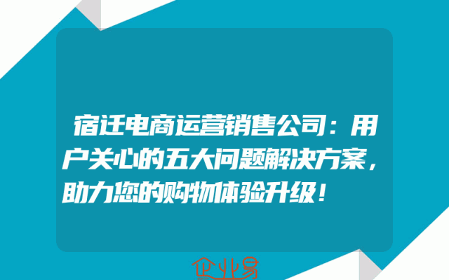 - 宿迁电商运营销售公司:用户关心的五大问题解决方案,助力您的购物体验升级!