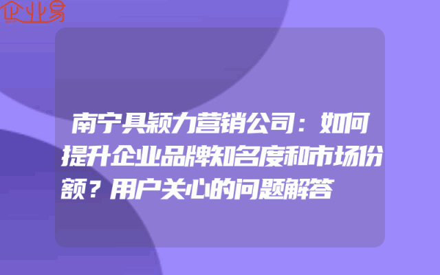 - 南宁具颖力营销公司:如何提升企业品牌知名度和市场份额?用户关心的问题解答