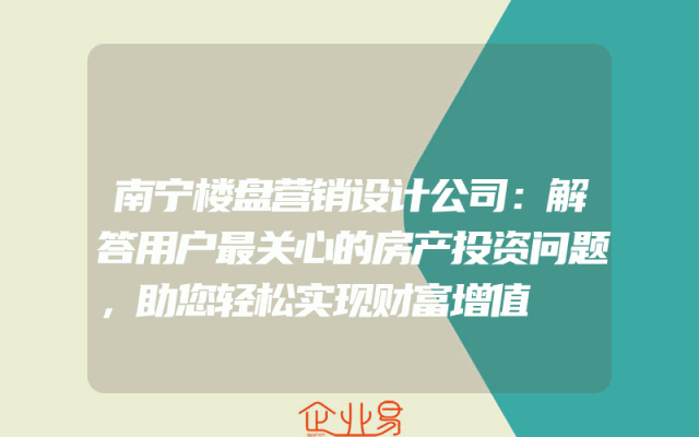 - 南宁楼盘营销设计公司:解答用户最关心的房产投资问题,助您轻松实现财富增值