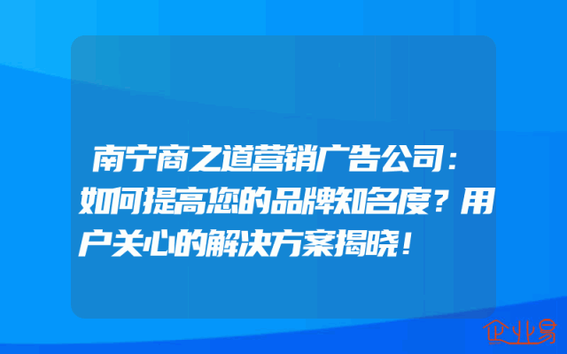 - 南宁商之道营销广告公司:如何提高您的品牌知名度?用户关心的解决方案揭晓!