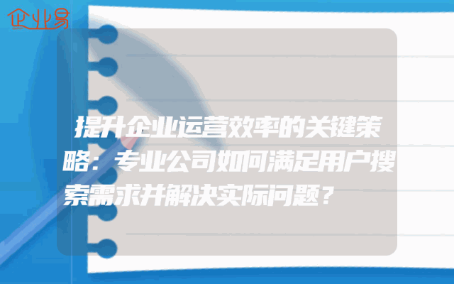 - 提升企业运营效率的关键策略:专业公司如何满足用户搜索需求并解决实际问题?