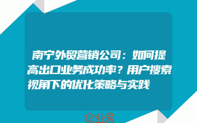 - 南宁外贸营销公司:如何提高出口业务成功率?用户搜索视角下的优化策略与实践