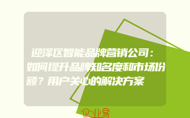 - 迎泽区智能品牌营销公司:如何提升品牌知名度和市场份额?用户关心的解决方案