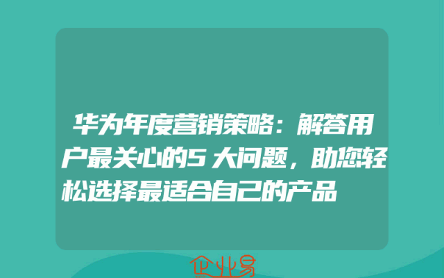 - 华为年度营销策略:解答用户最关心的5大问题,助您轻松选择最适合自己的产品