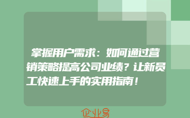 - 掌握用户需求:如何通过营销策略提高公司业绩?让新员工快速上手的实用指南!