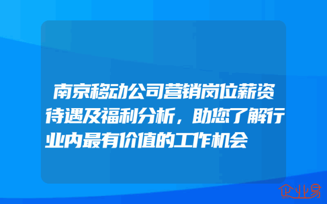 - 南京移动公司营销岗位薪资待遇及福利分析,助您了解行业内最有价值的工作机会