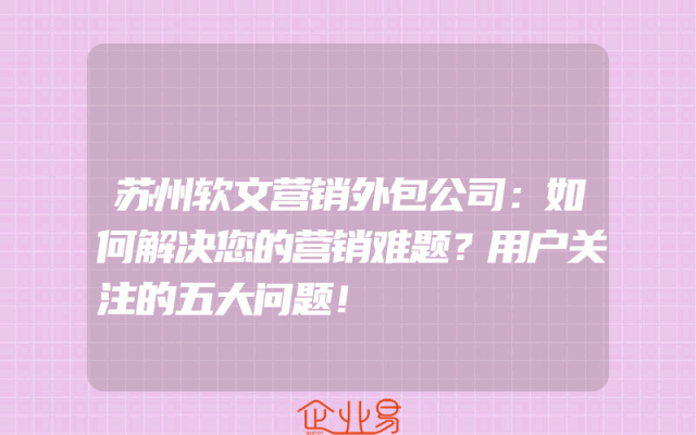 - 苏州软文营销外包公司:如何解决您的营销难题?用户关注的五大问题!