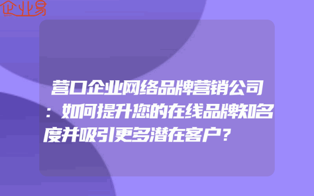 - 营口企业网络品牌营销公司:如何提升您的在线品牌知名度并吸引更多潜在客户?