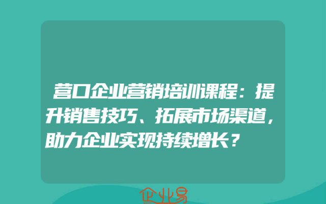- 营口企业营销培训课程:提升销售技巧、拓展市场渠道,助力企业实现持续增长?