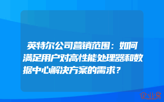 - 英特尔公司营销范围:如何满足用户对高性能处理器和数据中心解决方案的需求?
