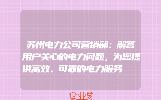 - 苏州电力公司营销部:解答用户关心的电力问题,为您提供高效、可靠的电力服务