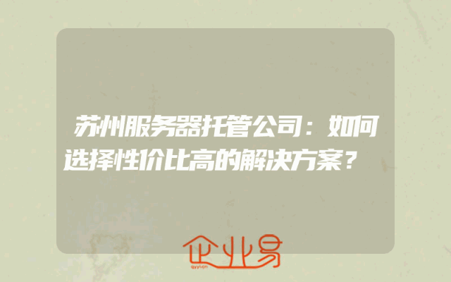 - 苏州服务器托管公司:如何选择性价比高的解决方案?