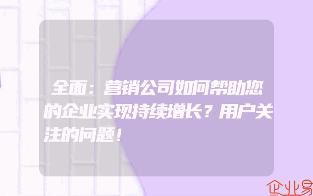 - 全面:营销公司如何帮助您的企业实现持续增长?用户关注的问题!