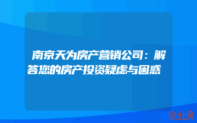 - 南京天为房产营销公司:解答您的房产投资疑虑与困惑