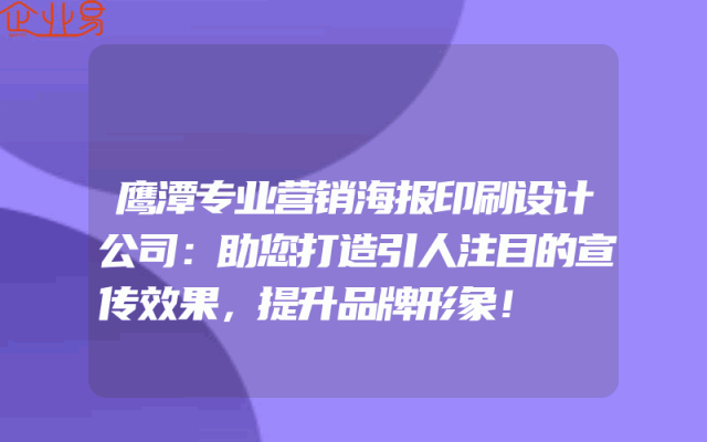 - 鹰潭专业营销海报印刷设计公司:助您打造引人注目的宣传效果,提升品牌形象!
